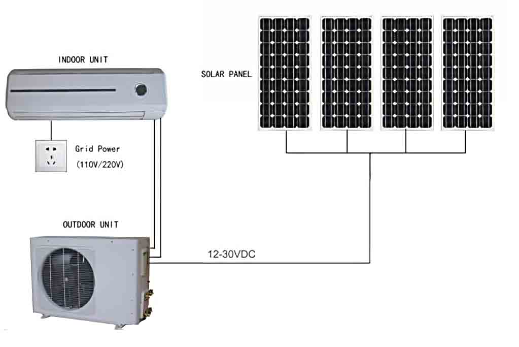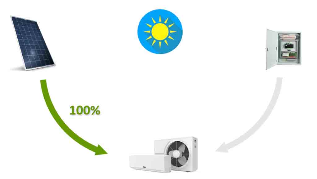 1. When the solar power is sufficient, solar power directly drives the air conditioner.
