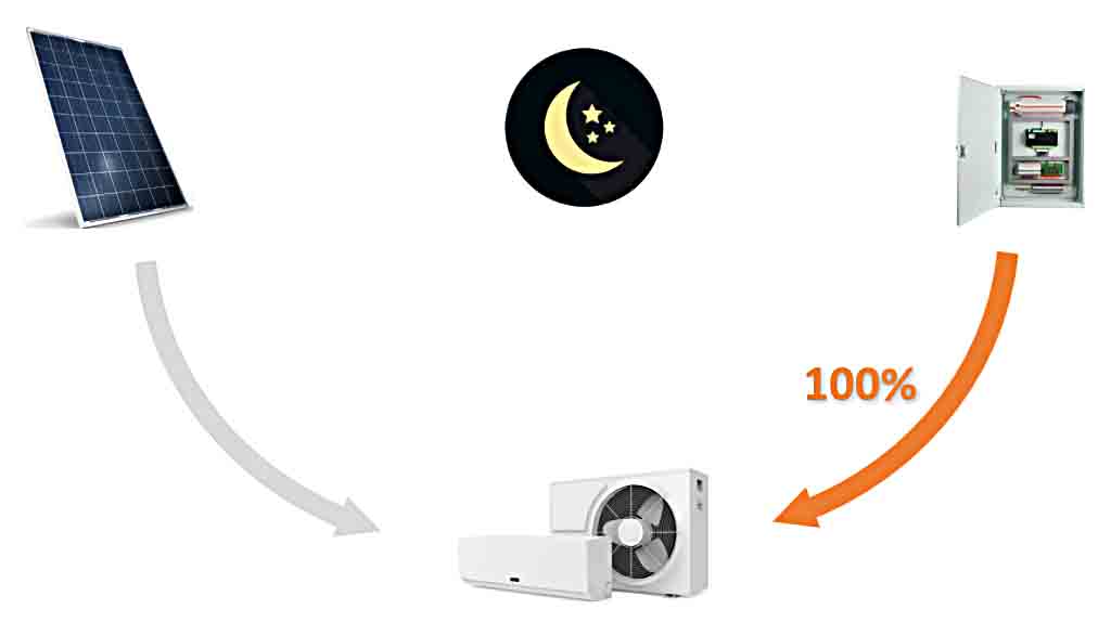 3. When there is no solar power, only AC power will drive the air conditioner.