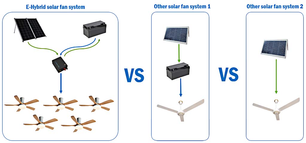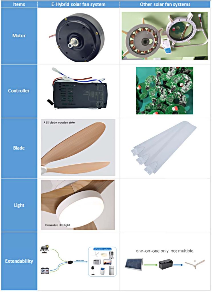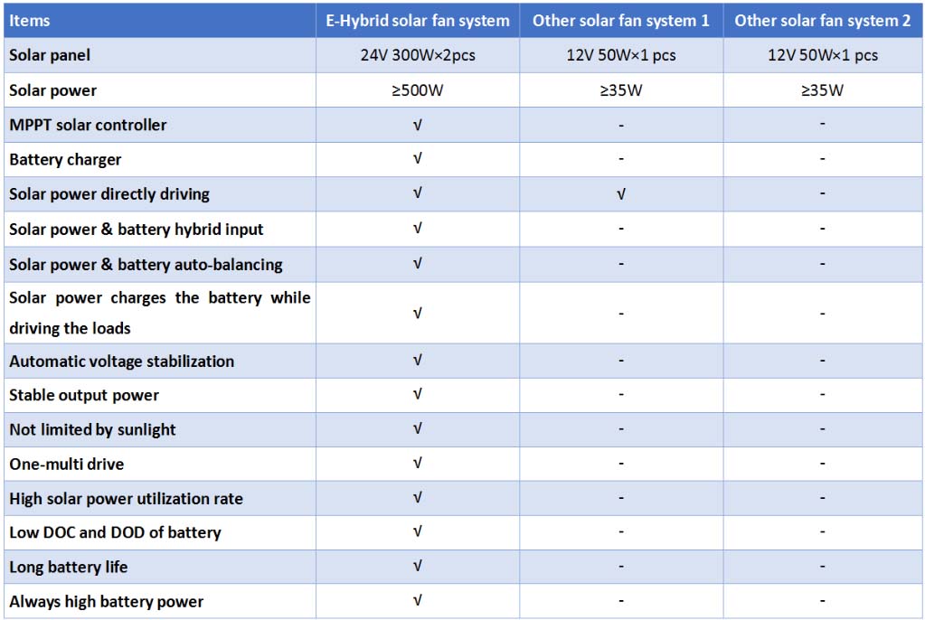 Este artículo presenta principalmente la comparación entre el sistema de ventilador solar E-Hybrid y otros ventiladores solares..
